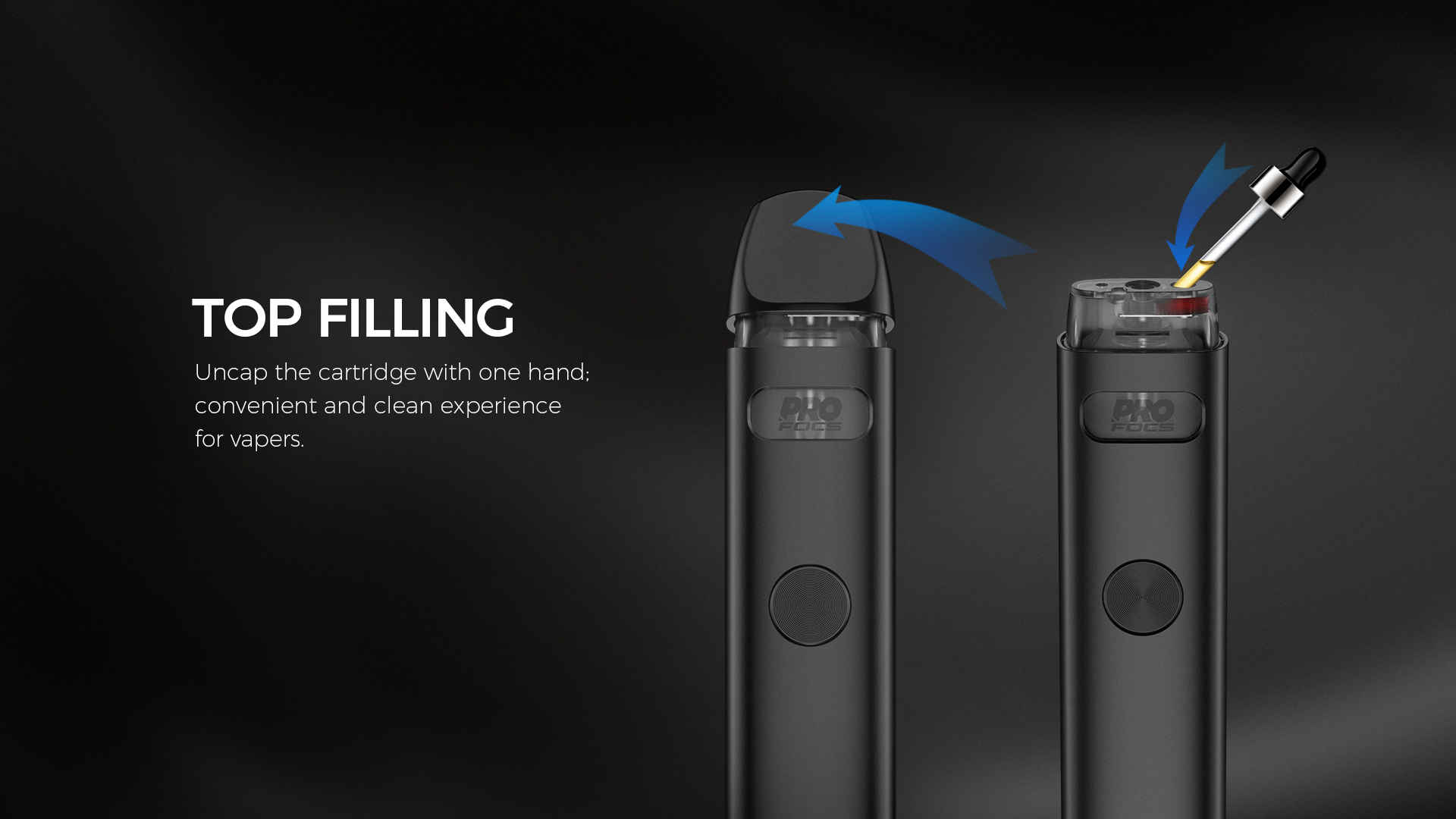 - 填充煙油:打開煙彈填充口,加入喜愛煙油,等待數分鐘讓線圈充分吸收。