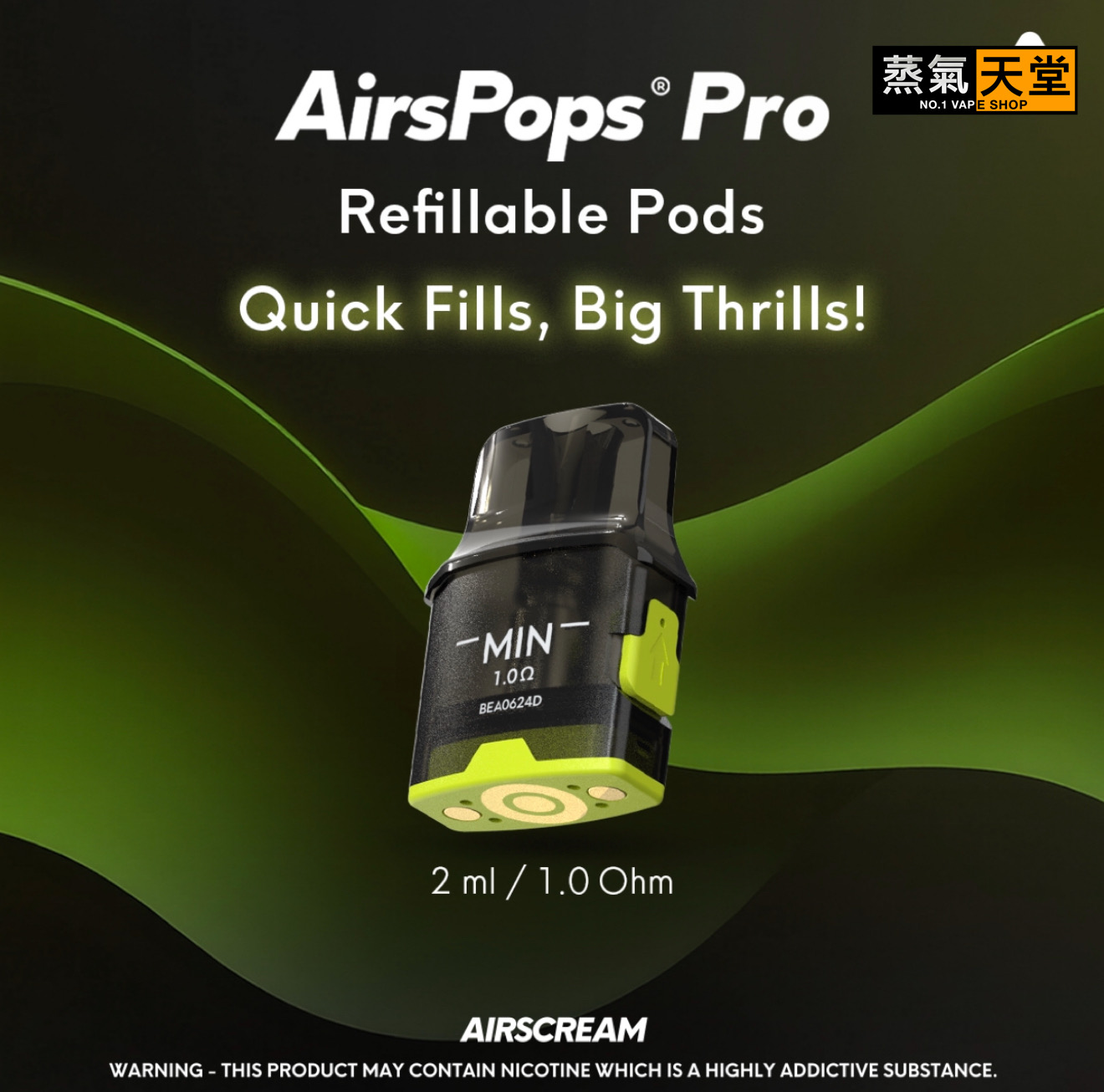 0.8歐姆整合吊艙與AIRSCREAM的AirsPops Pro、Pro Lite和AirEgg相容,並與裝置分開銷售。